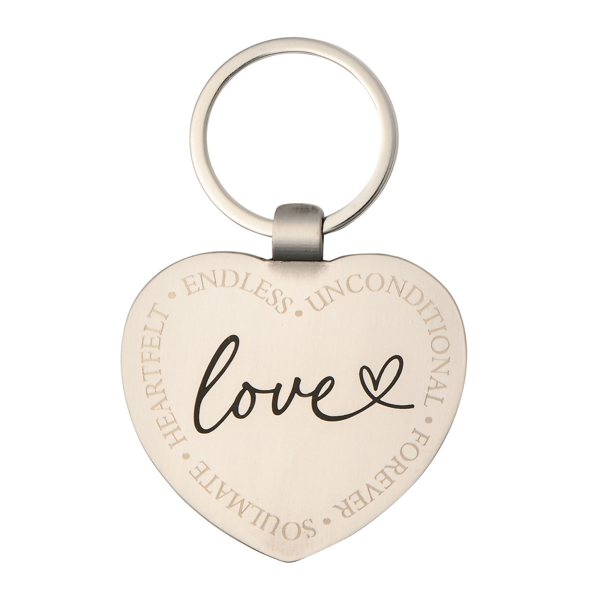 Each heart-shaped keyring features a meaningful word - from Mum, Dad, and Grandma to Friends and Love - thoughtfully inscribed for a personal touch. Stylish and practical, these keyrings are perfect for everyday use and make thoughtful gifts.