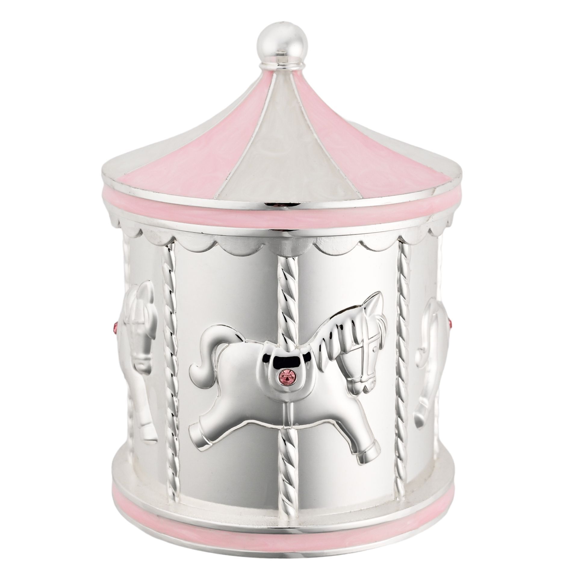 Its carousel-inspired design and soft pink hue appeal to young savers, making saving money a delightful experience.