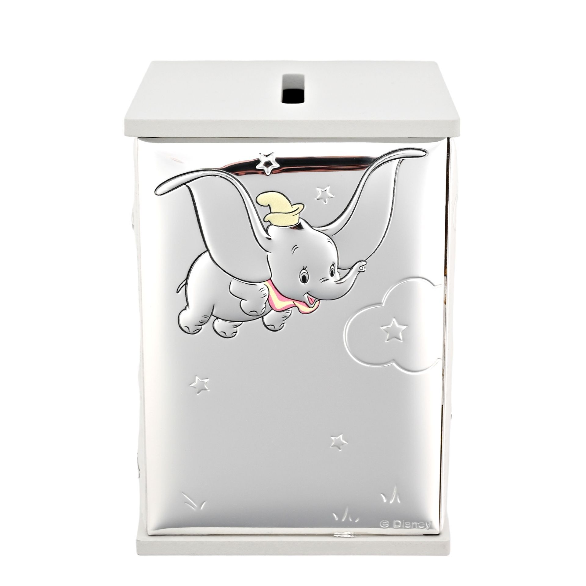 A Disney Silver Dumbo Money Box. Made from attractive silver-plated material from Italy, this originally designed money box is a great way to celebrate the magic of Disney in your stores and create lasting memories for Disney superfans.