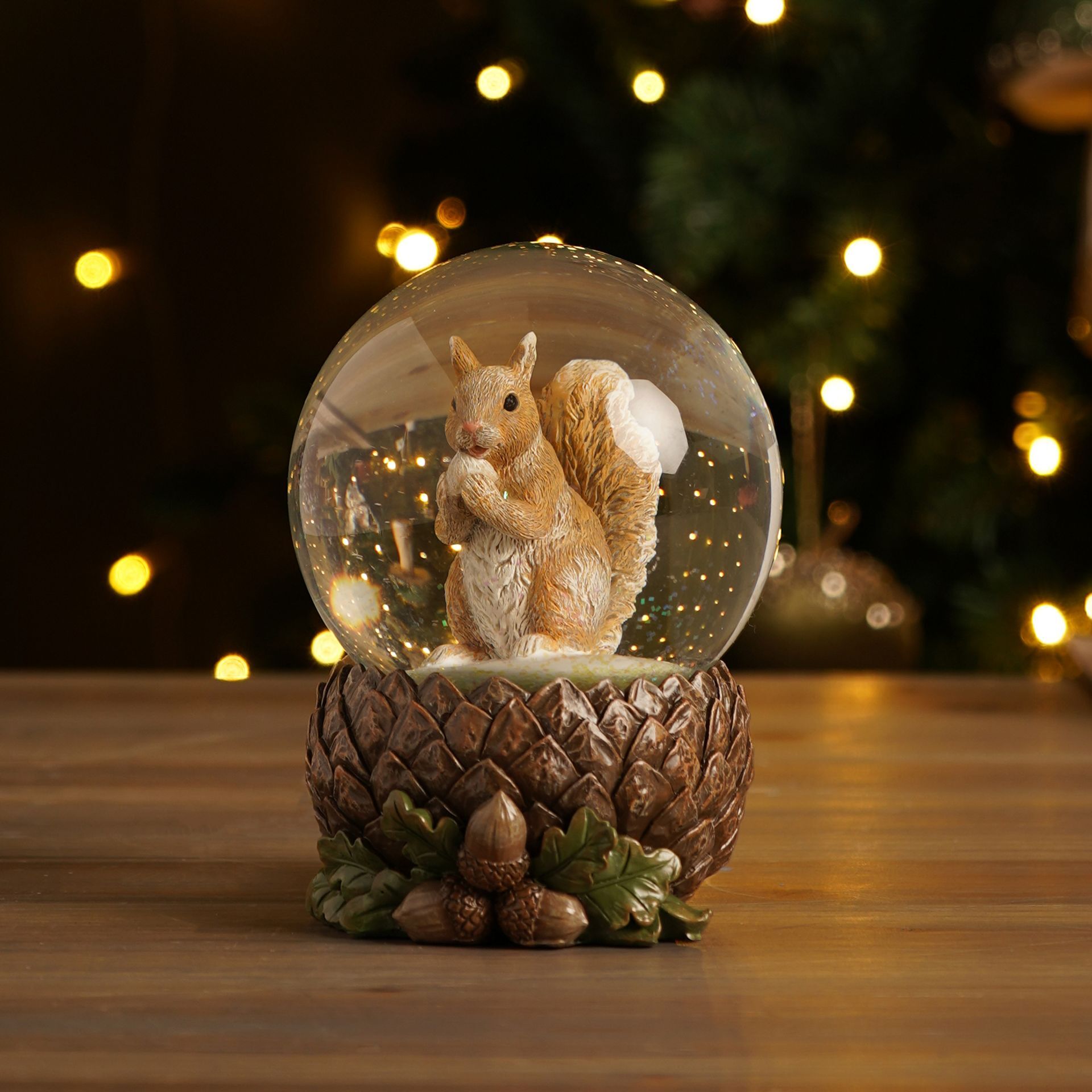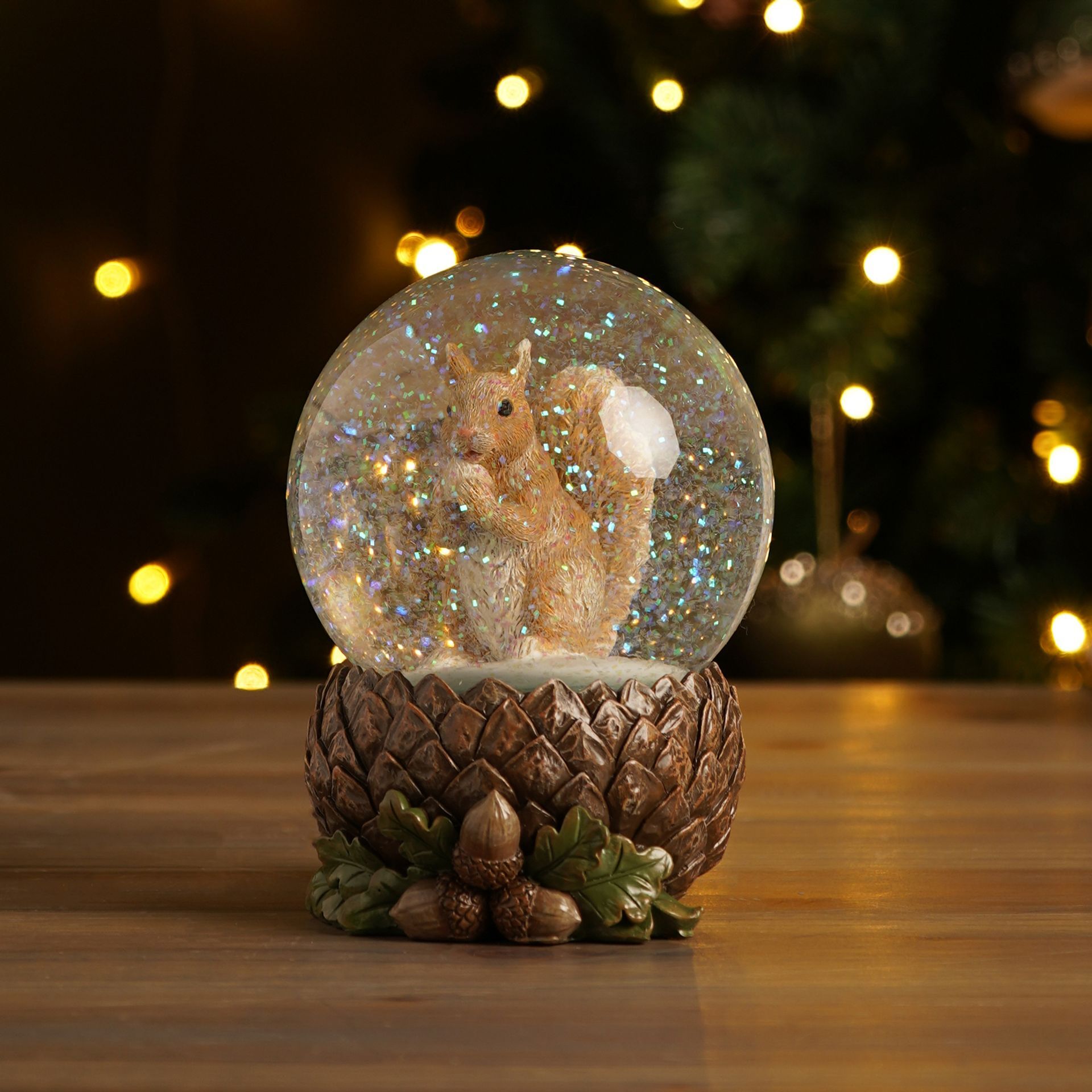 Large Resin Snow Globe with Squirrel on Natural Base 13cm