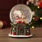 A snow globe containing a figurine of Santa Claus surrounded by festive decorations sits on a display stand. The scene is brought to life with vibrant colours and whimsical detailing, creating a joyful centrepiece for seasonal styling.