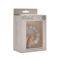 It features two ring handles, made with natural finish wood sourced from sustainably managed forests, providing comfort to delicate hands. The attached ring of pastel grey and white silicone beads features a single wooden bead, all of which are child friendly, durable and long-lasting.
